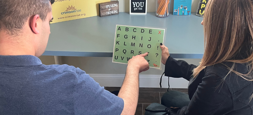 A spelling session at CrimsonRise is typically one hour, once a week. But, just like most things in life, practice makes perfect. So the more spellers work on their skills, the better they’ll get at communicating.